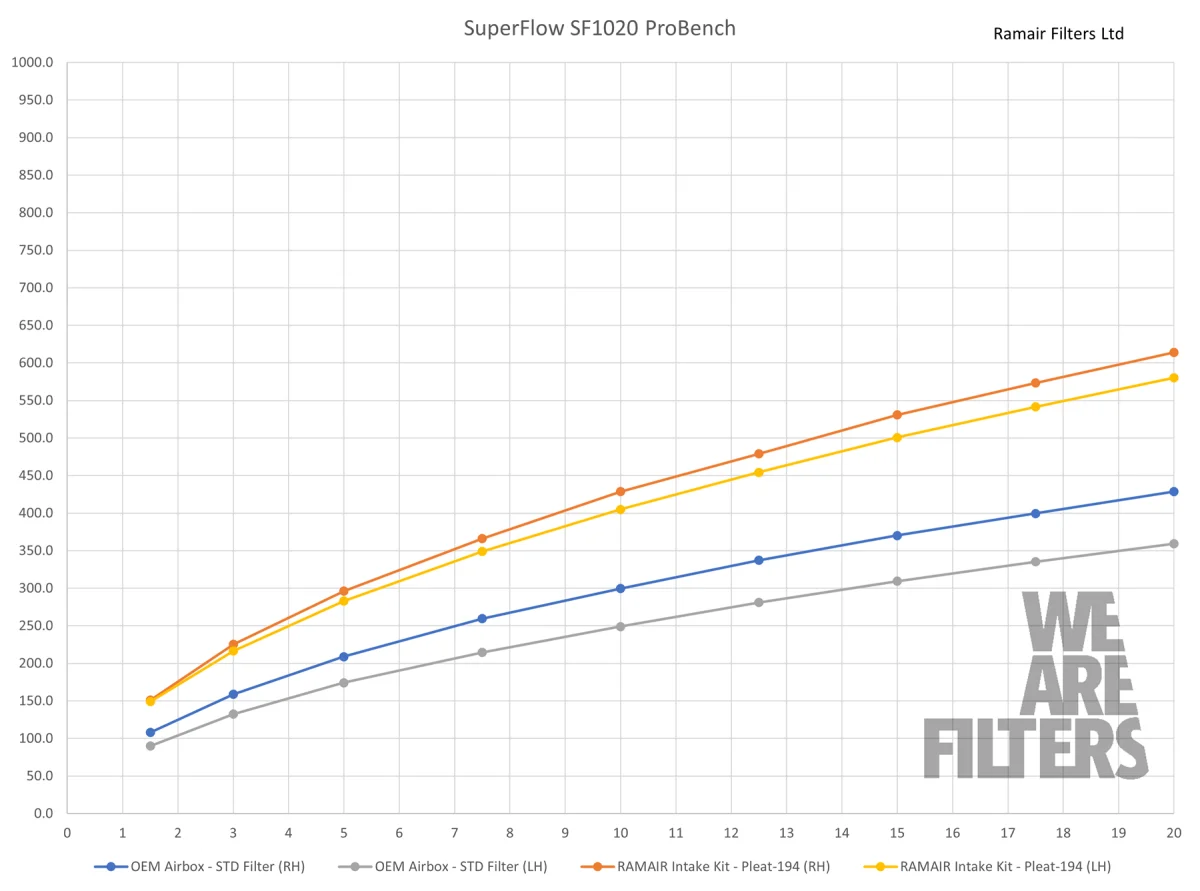 Die Ramair Ansaugsysteme bieten eine effektive Optimierung der Luftzufuhr für Turbo- und Saugmotoren. Im Vergleich zur serienmäßigen Luftführung reduziert die offene Bauweise die Ansauglufttemperatur und den Strömungswiderstand – was zu besserer Gasannahme, erhöhter Effizienz und mehr Leistung führt.